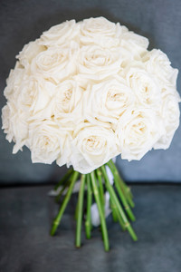Grace's bridal bouquet was a simple posy of white roses and the bridesmaids bouquets were a mix of white roses and gypsophila.