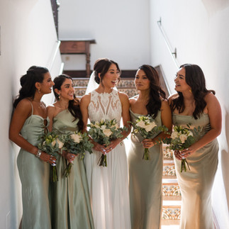 Teresa chose a soft sage green for her bridal party with coordinating bouquets, created by Jess and her team, a mix of eucalyptus, greenery, white roses and alstromeria. Teresa's bouquet also included shades of soft apricot.