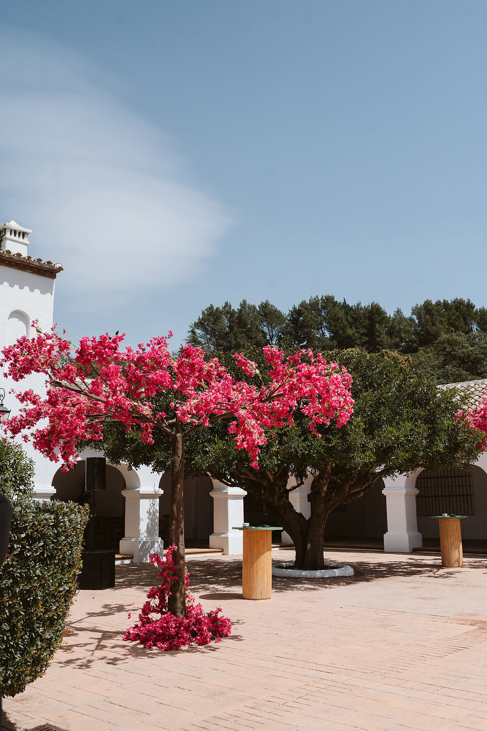 The styling presented throughout the open day leaned towards a modern, understated elegance allowing the natural beauty of the venue to take centre stage and we love those bougainvillea trees by Pedro Navarro against the white of the buildings.